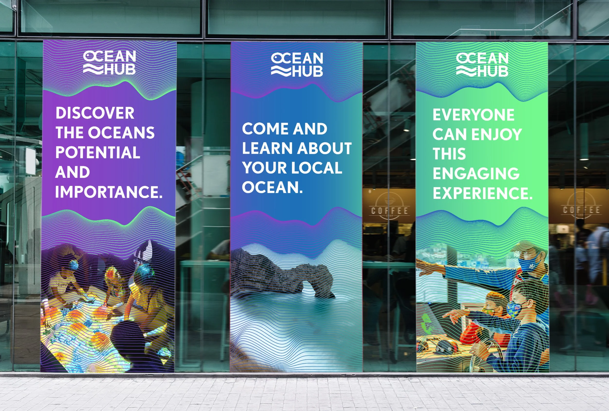 Ocean Hub is a brand identity targeted towards bringing a wide audience of families, schools and researchers to an ocean discovery and education centre.